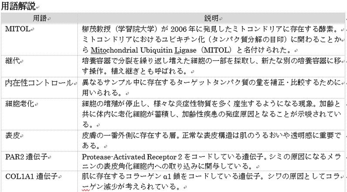 さらに、今回の研究成果から明らかになったMITOLによるミトコンドリア機能の維持に着目し、エイジングケア商品の開発に応用してまいります。