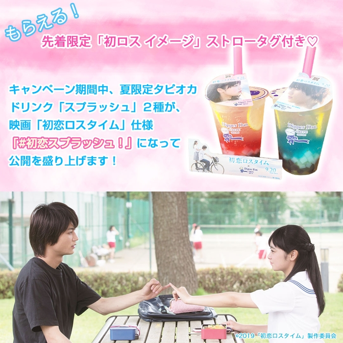 ディッパーダンでは映画『初恋ロスタイム』公開を記念して、期間限定メニューの「タピオカスプラッシュ」を「#初恋スプラッシュ」として販売。