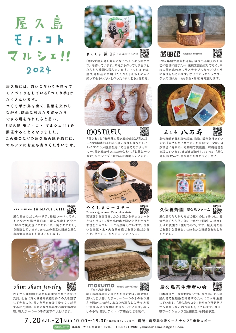 屋久島モノ・コト マルシェ2024: https://www.instagram.com/yakushima.monokoto.marche/