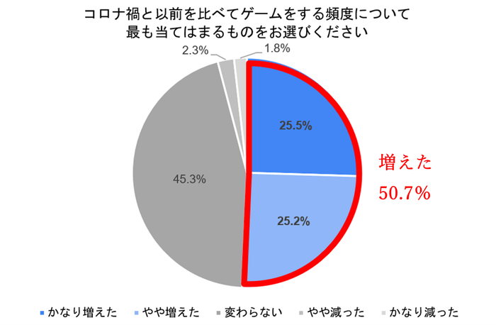- コロナの影響によってゲームプレイの頻度が増えた人は5割(50.7%)