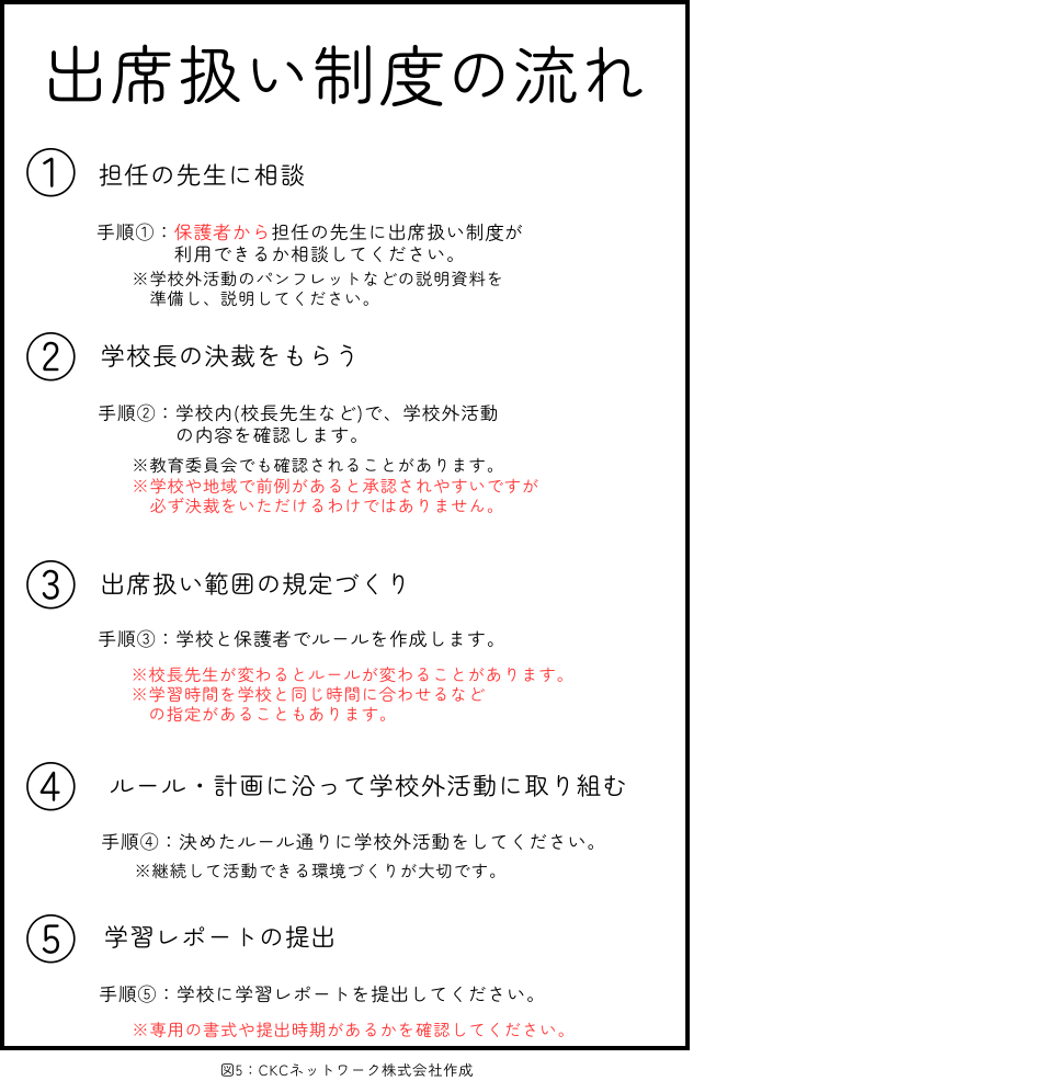 出席扱い制度については、活用までの流れやルールについてよくわからないという声を、今までの参加者からもお聞きしました。出席扱い制度はお子さまの状況、地域、学校によって対応が変わる可能性があります。