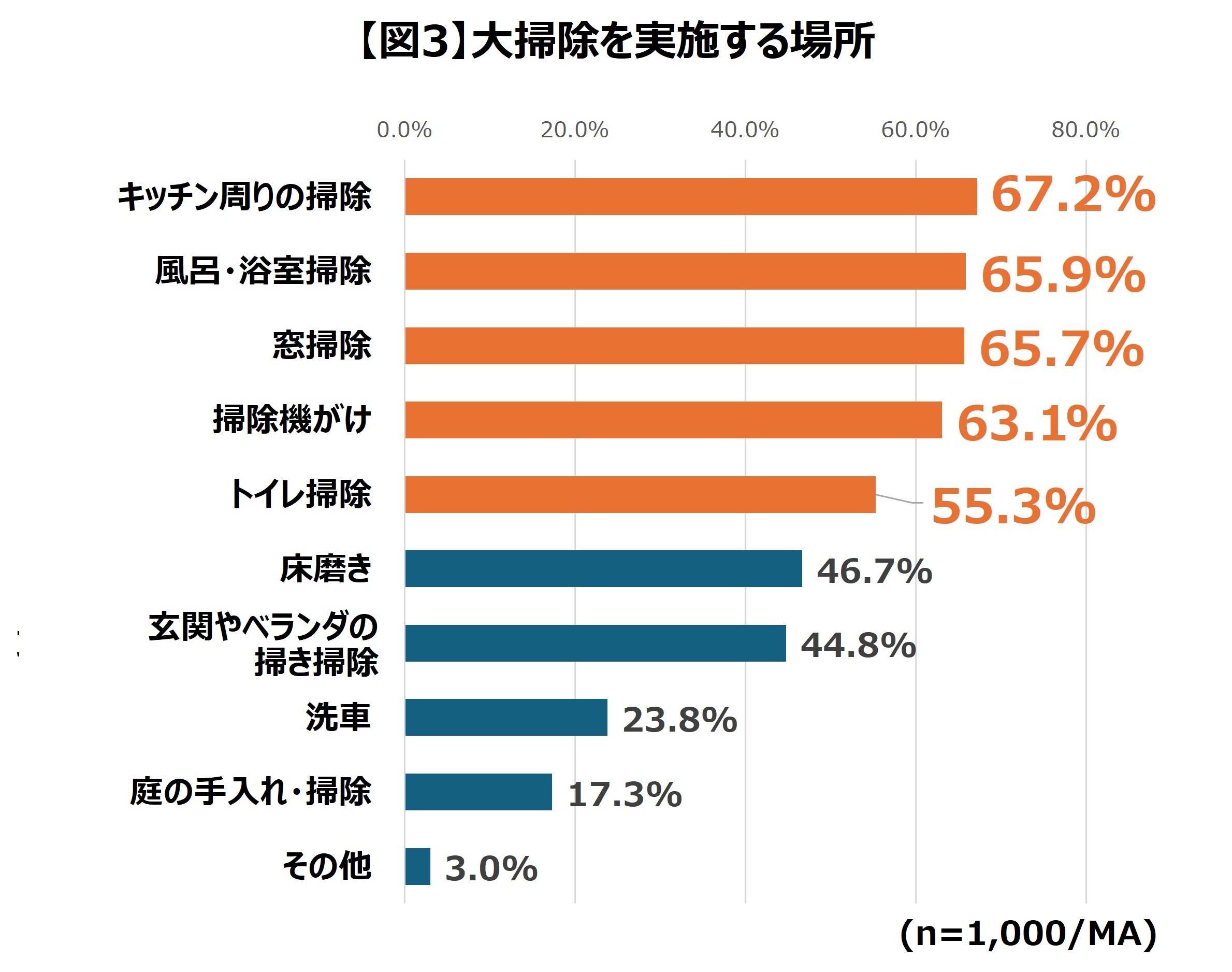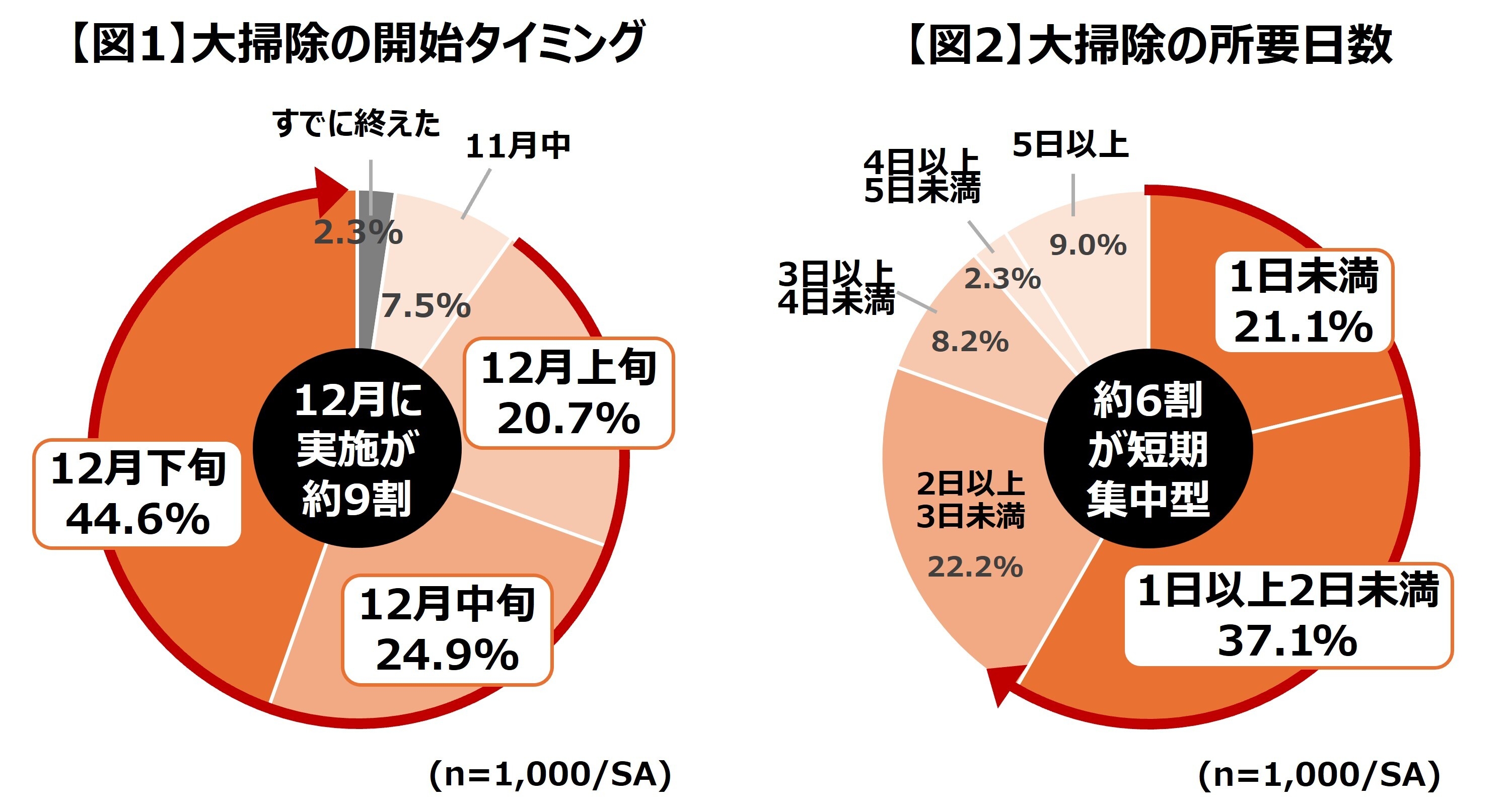 大掃除は約6割が2日未満で終わらせる“短期集中型”。実施場所は「キッチン周り」が1位