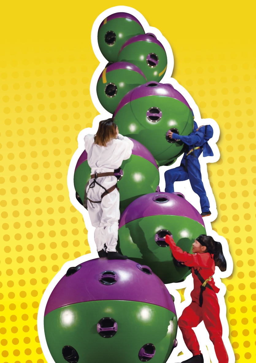 8段に連なったまるで巨大な龍のようなタワーを、球の側面にある足場を上手に使って登ります。登り切ったものはそのあかしとして頂上(てっぺん)に仕掛けられたドラを鳴らすことができます。スタートする位置により難易度の異なる3つのコースがあります。