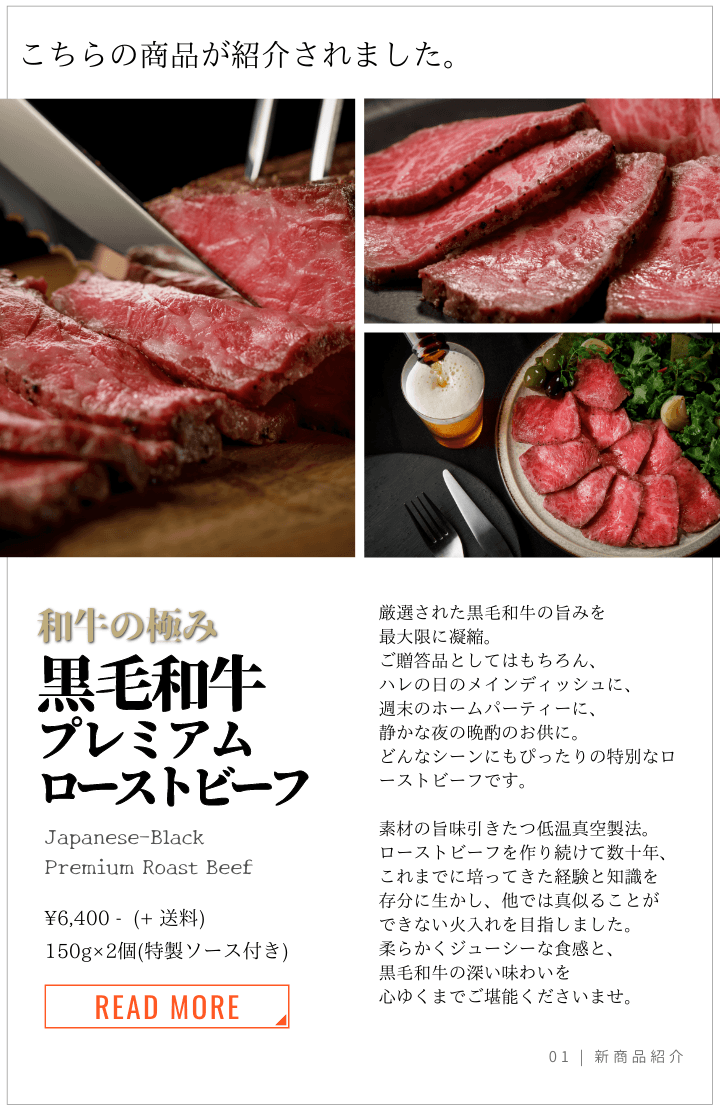 「和牛の極み 黒毛和牛プレミアムローストビーフ」をトップバッターとしてご紹介いただきました。