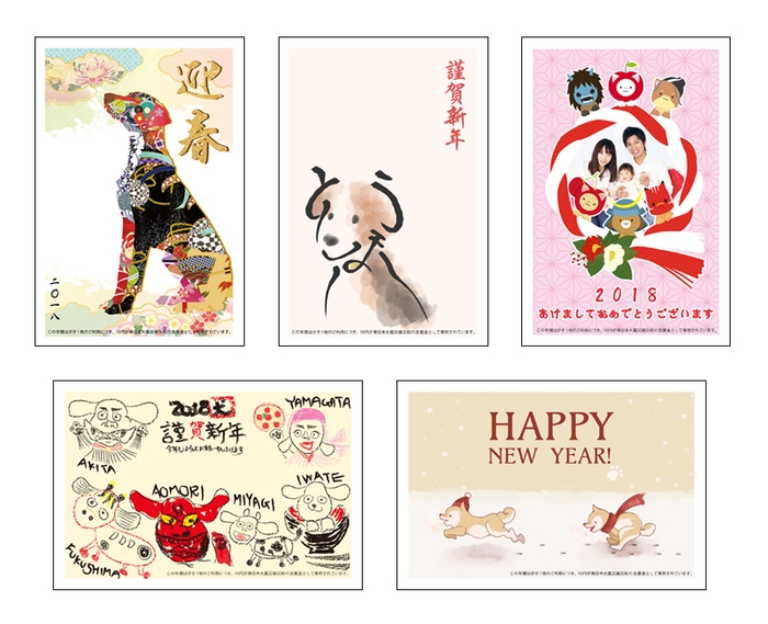 学生が作ったデザインは、「東北の未来につなげる年賀状」をテーマに掲げ開催したデザインコンテストの入選作品です。来年の干支である「戌」をあしらったものや東北各地を代表するものと「戌」とを掛け合わせデザインされたもの、また、ご利用いただく方のお写真を入れられるものなどです。昨年の応募作品数の120%を超える過去最高の応募数の中から選ばれた作品です。