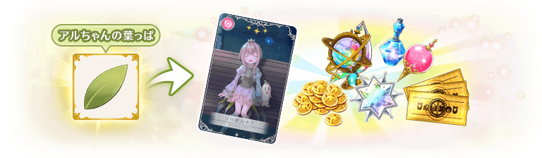 本イベントで獲得した「アルちゃんの葉っぱ」は限定メモリア「つつ闇の中で」等、貴重なアイテムと交換できます。