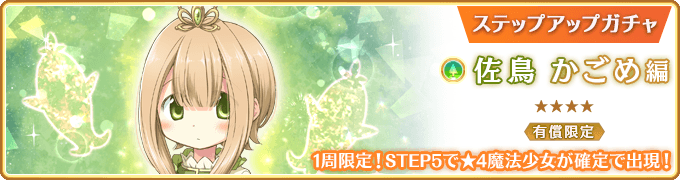 ※『有償限定 ステップアップガチャ 佐鳥かごめ編』の★4魔法少女確定までのカウントは『佐鳥かごめ ピックアップガチャ』とは異なります。