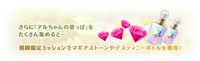 期間限定ミッションを達成することでマギアストーンや「オーバーリミッター」「デスティニーボトル」「レインボーオーブ」「マギアチップ」を獲得できます。