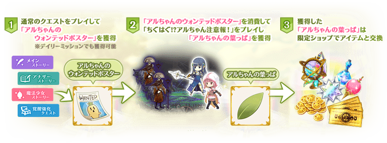 本イベントでは魔法少女となった「佐鳥かごめ(CV.高尾奏音)」が、突如として原因不明の暴走を始めたアルちゃんに振り回されながらも、互いの絆を深めるストーリークエストがプレイできます。