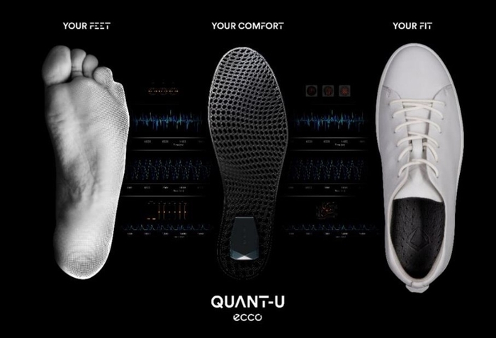 フットウエア市場に機能的にカスタマイズされた『QUANT-U』を発表。靴を履く個々の人の足型と足の自然な動きに合わせた3Dプリンター・ミッドソールは、ECCOのアイコン的存在のシューズに取り入れました。カスタマイズされた靴には定価に追加料金が加わり2018年4月、期間限定でアムステルダムにあるECCOのコンセプトストア『W-21』で展開されました。『QUANT-U』はECCOが培ってきた靴製造における伝統に技術、素材と更なる履き心地の良さを融合し、新時代のシューズ業界への発展と革新を目指します。