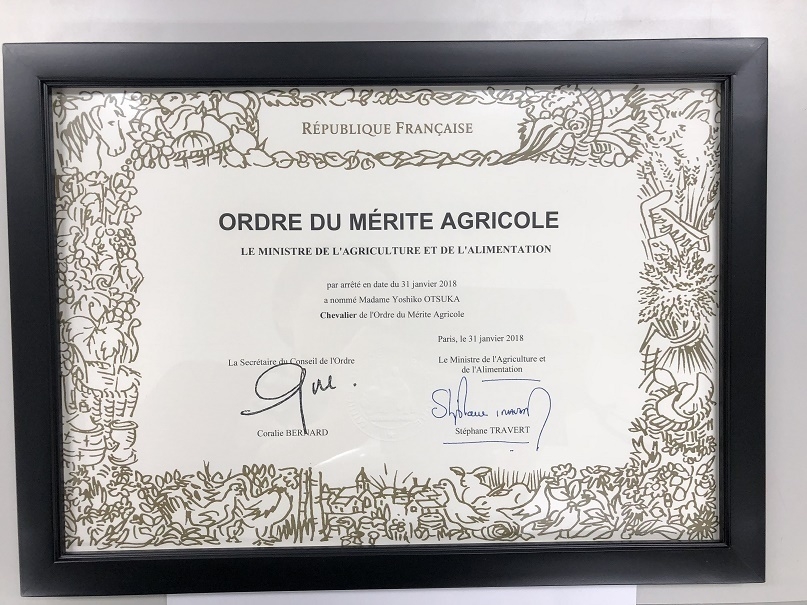 今回の大塚の受章は、フランス畜産馬を対象とした日本国内への調達ルート開発と、今後の農業事業拡大への貢献及び文化交流への貢献が認められた結果で、当社にとっても大変な名誉と言えます。