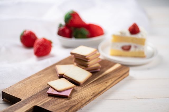 エキュート大宮 ノース店限定商品として、ジャージーミルクと相性ピッタリのストロベリーを組み合わせた商品を限定販売します。ストロベリーショートケーキクッキーは、ジャージーミルクを使用してしっかりと焼き上げたクッキーで、上品な甘さのストロベリーチョコをサンドしました。お口の中に入れるとストロベリー ショートケーキを食べているような美味しさと楽しさがお口いっぱいに広がります。