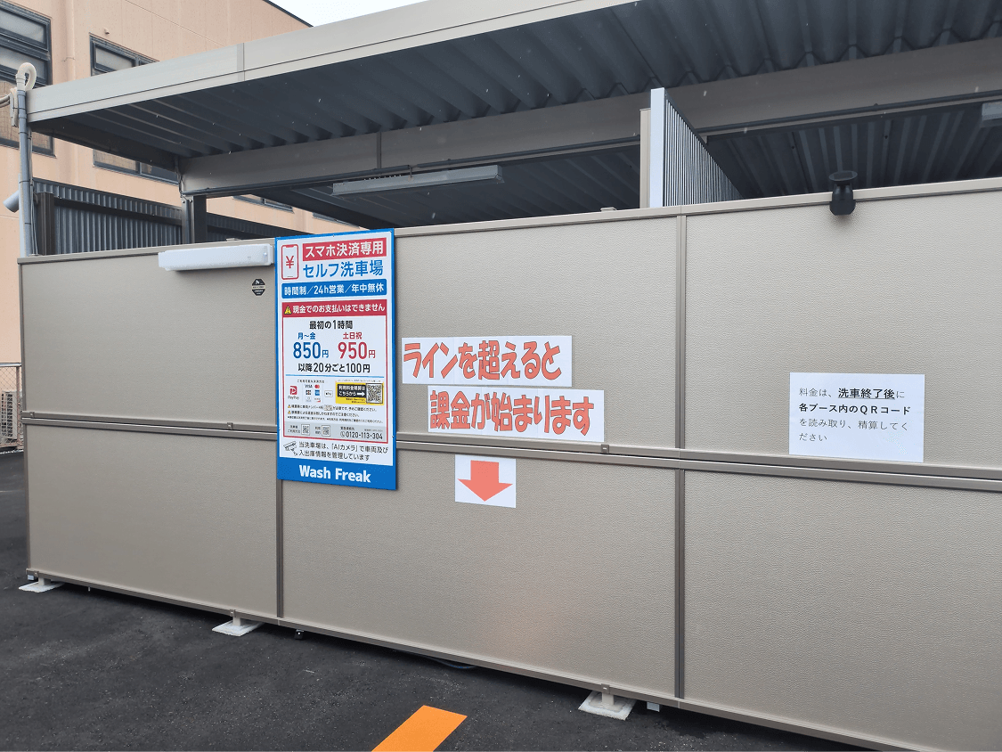 b.空車の場合:入場して空いてるブースを利用 - 洗車終了後、ブース内設置の二次元コードで決済