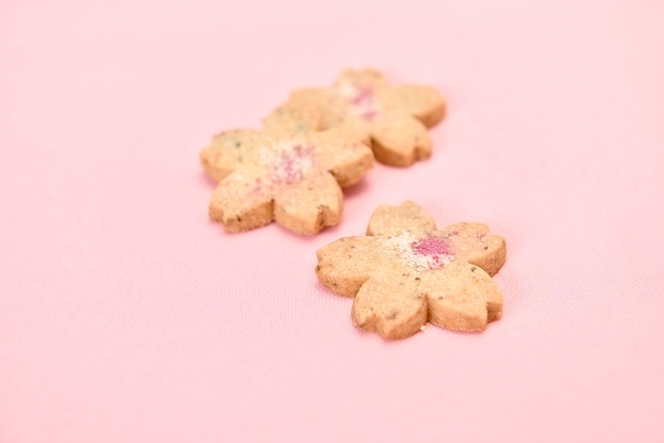 塩漬けの桜の葉を加えた、少し塩味のある生地のショートブレッドです。アクセントに桜の花びらのフレークとパルメザンチーズをふって仕上げました。一口食べるとふわっと広がるバターの優しいコクに、塩漬けの桜の葉のほのかな塩味が口いっぱいに広がって春らしい味わいが楽しめます。桜の花の形と濃いピンクの桜の花びらフレークが、桜の季節にぴったりの毎年春に販売するロングセラー商品です。