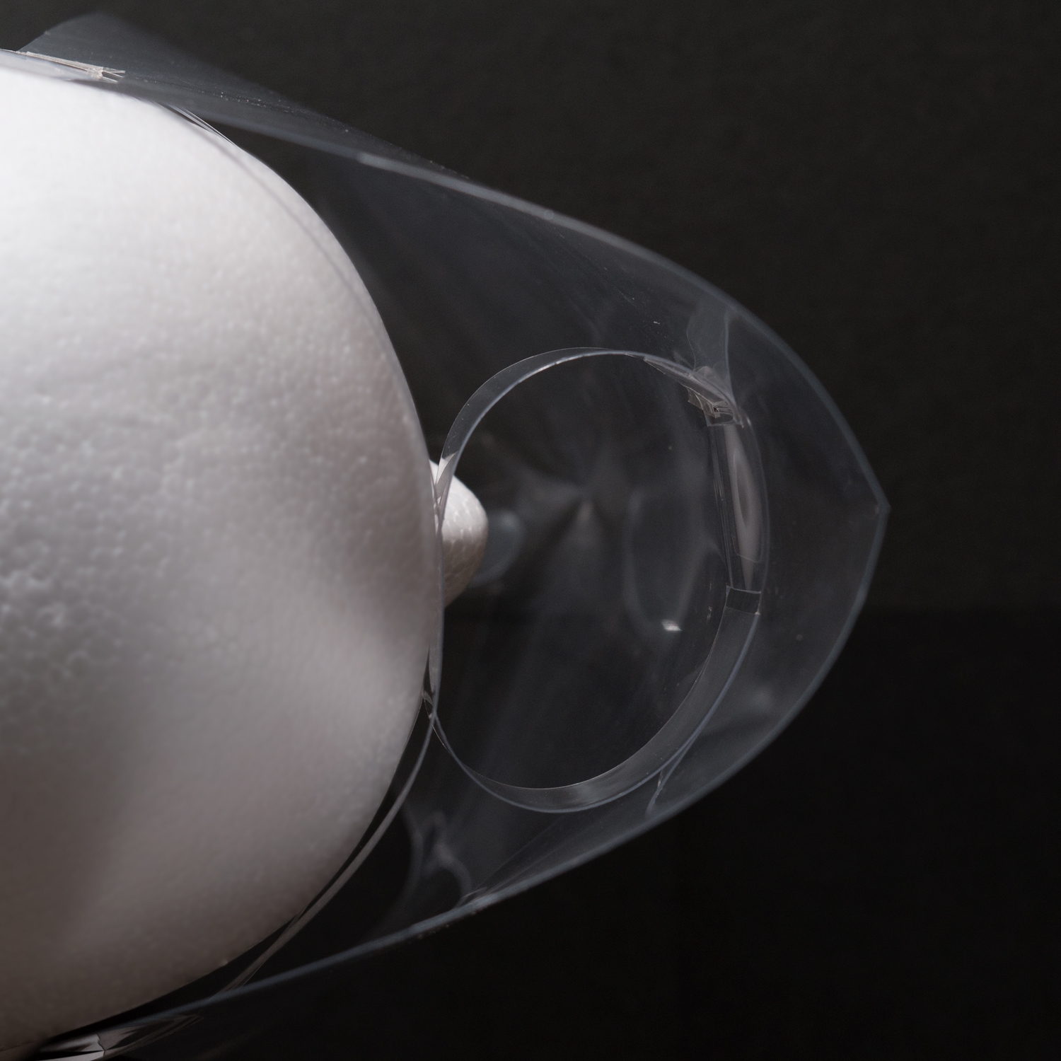 『ファイン フェイスシールド』は、透明樹脂スクリーンで視界を遮らず、マスクだけでは防げない飛沫感染から身を守ります。機能の特徴は次の3つ。1点目は、組み立て前の本体形状がA3サイズのシート状のため保管場所を取らず、3分で組み立て可能なこと。2点目は、36gと軽量、且つ、長時間の使用でもストレス無く着用できるデザイン性です。額とシールドの間に円筒形のスペーサーがあり、熱がこもりにくい構造です。