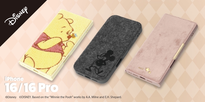 iPhone16、iPhone16Pro に対応する背面がクリアで端末デザインを楽しめるディズニーキャラクターデザインの手帳型カバーを株式会社PGAが10月25日、31日からそれぞれ新発売