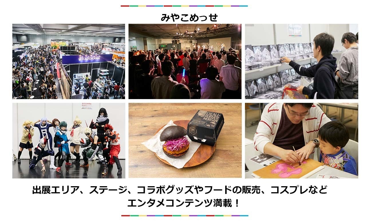 メイン会場となる「みやこめっせ」では出展ブース、ステージやオフィシャルグッズ販売、フードエリア、特別企画展など、様々な内容で展開します。