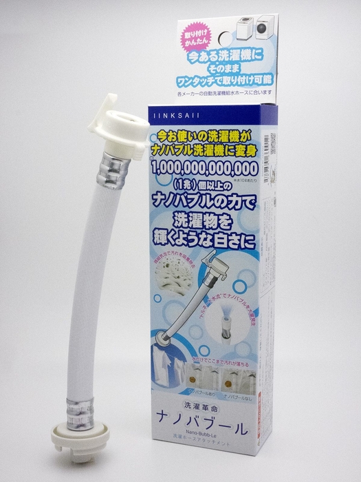日本初!魔法のホース「ナノバブール」を使えば、お使いの洗濯機がナノバブル洗濯機に変身!ナノバブル洗浄で洗浄力UPを実感!誰でも簡単に取付可能。