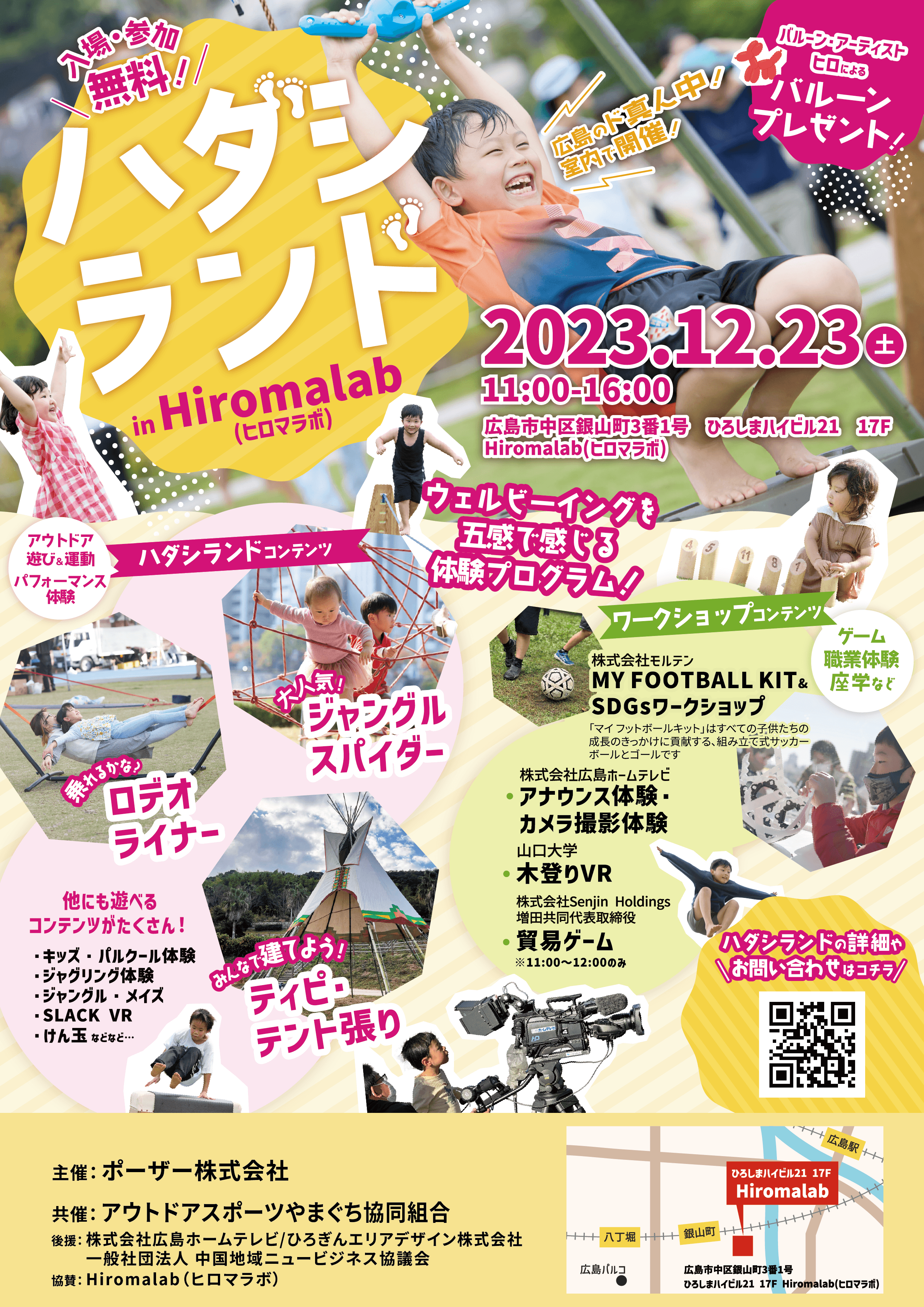 株式会社広島ホームテレビ(本社:広島市中区)は、12/23㈯に開催されるイベント「ハダシランド in Hiromalab(ヒロマラボ)」において、アナウンスやカメラ撮影といった職業体験コンテンツを展開します。