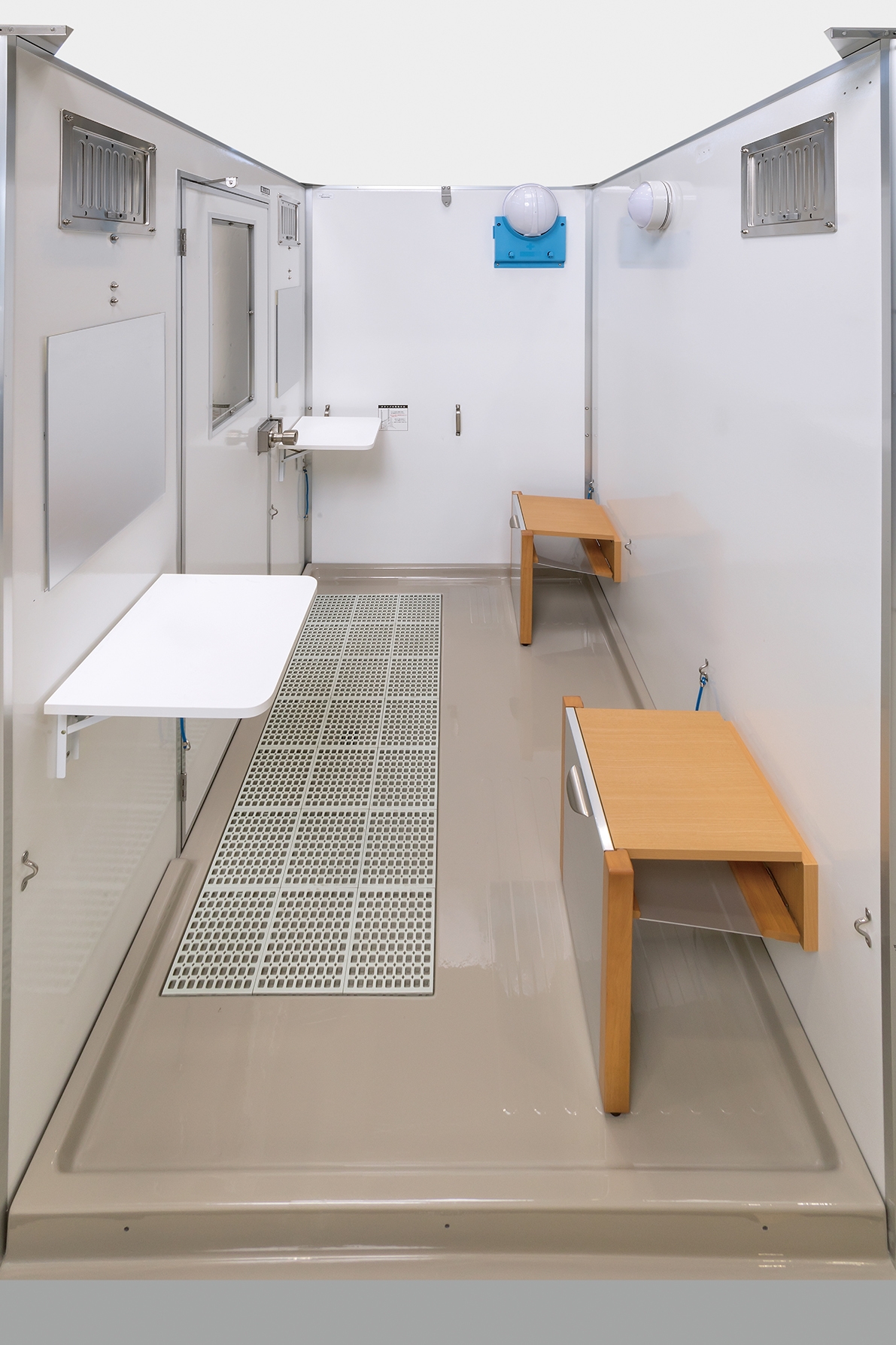 軽トラックの荷台に積載できるコンパクトな躯体ながら、様々な工夫を盛り込み快適な空間をご提供いたします。