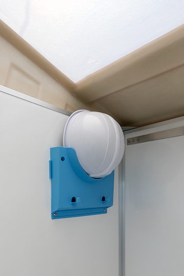室内には折り畳み式のテーブルと椅子を備えております。鏡、ヘルメット掛けなど快適に休憩するための設備を整えました。