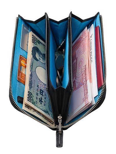 海外出張や旅行での使用を考えたコンパクトな長財布です。パスポートに加え、海外紙幣とコイン、カード、チケット、日本紙幣が収納できます。一つ一つ日本の職人による手仕事で作られており、仕上がりの美しさが特徴です。旅先でのちょっとしたメモ書きに便利なミニペンも付属、内装色も収納したものが分かりやすい明るい色を採用しました。