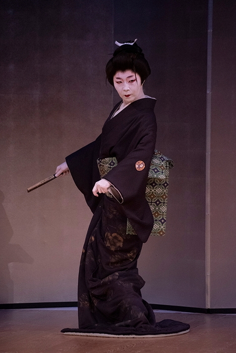 元来小さな空間で屏風を背に燭台の灯りの中、静かに舞われていたことから、少ない動きの中に人の苦悩や哀しみを内に秘め繊細に表現するため、動きの多い歌舞伎舞踊とは一味違った趣があります。