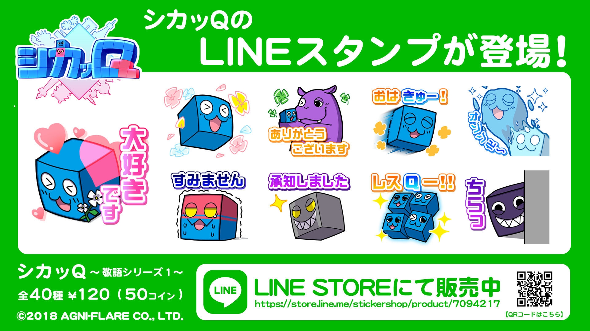株式会社アグニ・フレア(本社:神奈川県横浜市港北区、代表取締役:稲葉 剛士、以下 アグニ・フレア)は、Qキョクパズルアクション『シカッQ』に登場するキャラクタのLINEスタンプを本日2019年4月5日(金)にリリースしました。