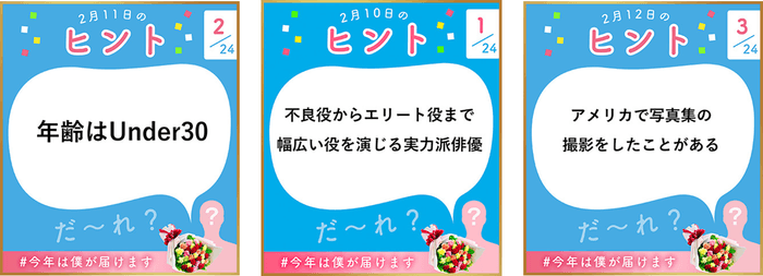 Twitterの花キューピット公式アカウント(@i8791)から毎日1つずつ発信されるヒントをもとに、たくさんの参加者から予想ツイートが投稿されました。「テレビドラマ初出演は2011年」「身長179センチ以上」などのヒントの積み重ねによって、徐々に参加者の予想が絞り込まれていき、後半は正解の投稿数が増えるとともに特別お届けキャンペーンへの期待の声も高まりました。