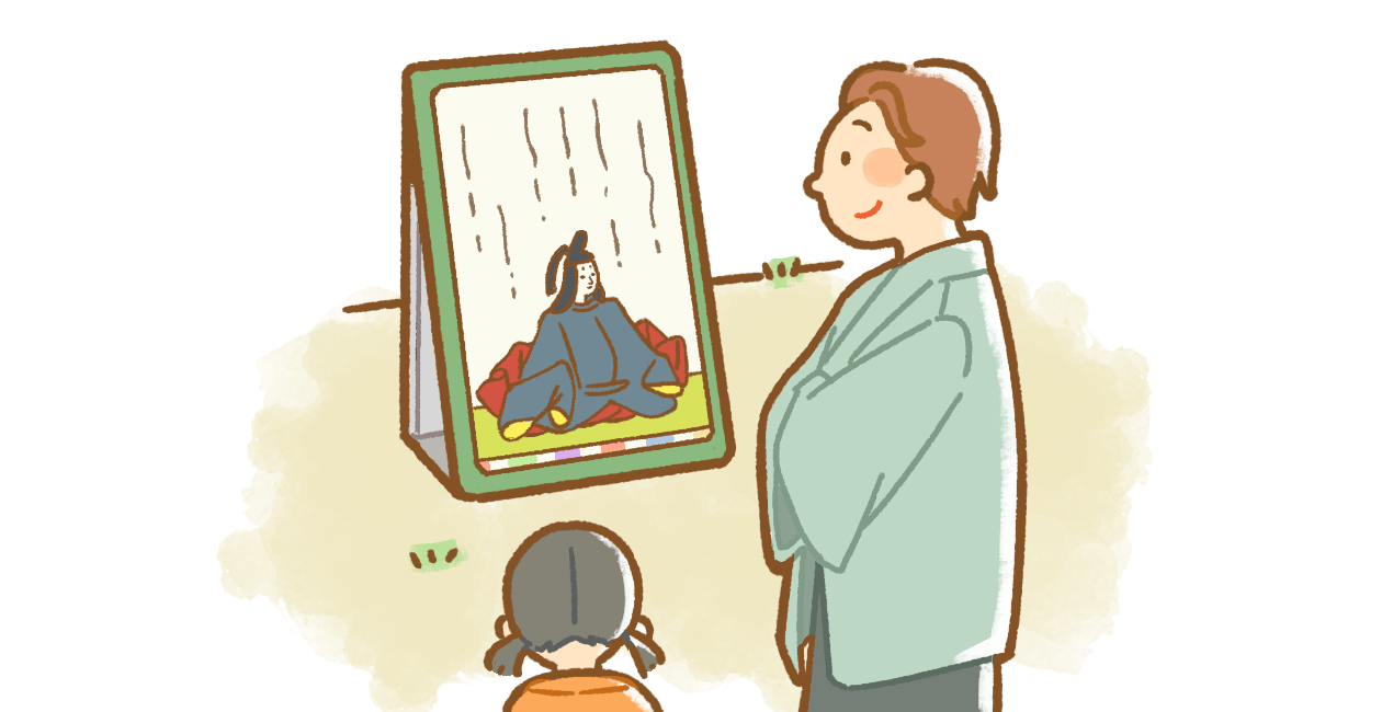 百人一首の句「君がため春の野にいでて若菜つむ わが衣手に雪はふりつつ」を描いた手札が登場!