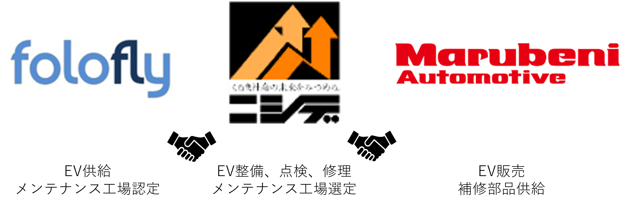 EVメーカー フォロフライ、西出自動車工作所、 丸紅オートモーティブの3社による車両整備網構築及び 補修部品供給における業務提携を開始