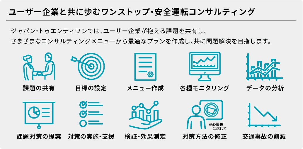 ジャパン・トゥエンティワン株式会社(本社:愛知県豊橋市/代表取締役社長:岸本賢和、略称J21)が国内総代理店として販売しているモービルアイ社(本社:イスラエル)の製品と連携機器を活用し、従来から行なっていたコンサル業務を充実・拡大し、本格的にコンサルティング事業をスタートします。