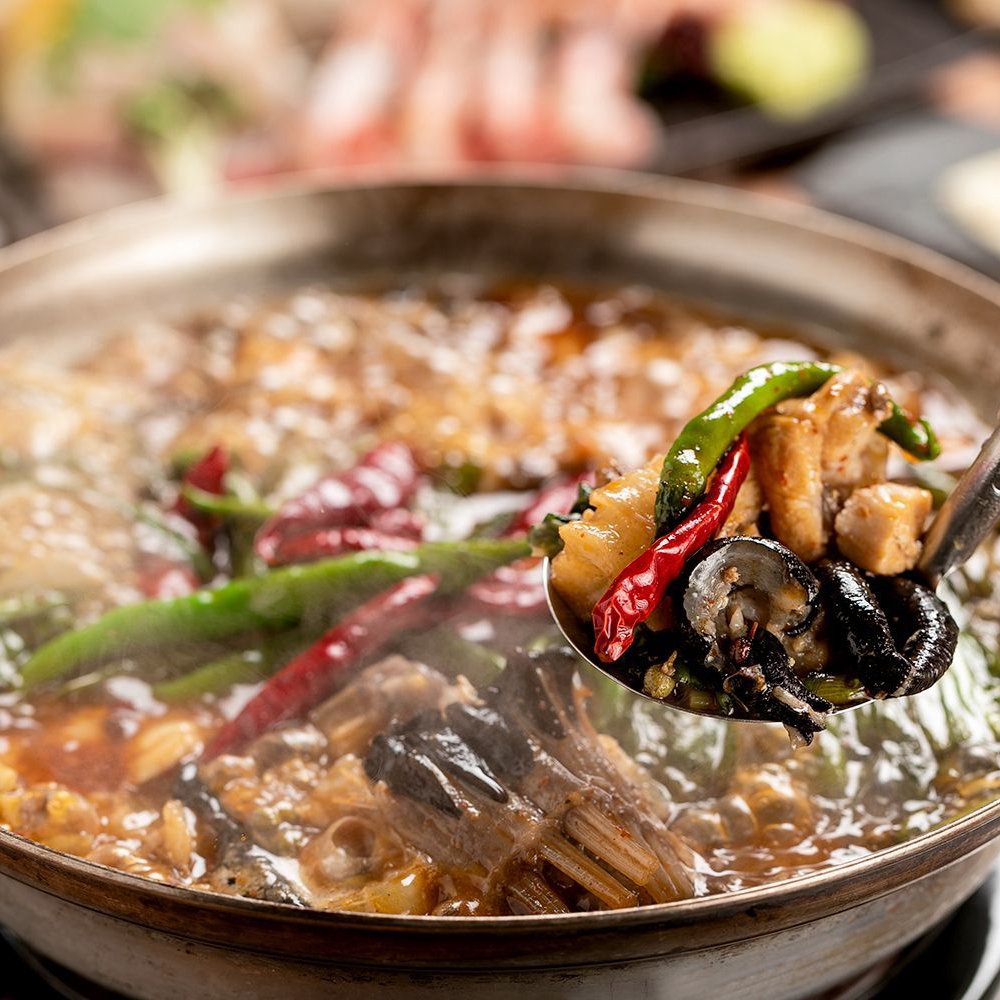 『あんこうとあん肝のしびれチーズ鍋』は、マイルドな辛みの山椒とパンチがあり香りも強い花椒、2つのしびれる辛みに、青・赤の唐辛子もしっかり効かせた刺激的な味わいのスープが特徴。そこにチーズの風味とまろやかな食感をプラスした、辛さの中に旨みをしっかり感じられる味わいの鍋です。