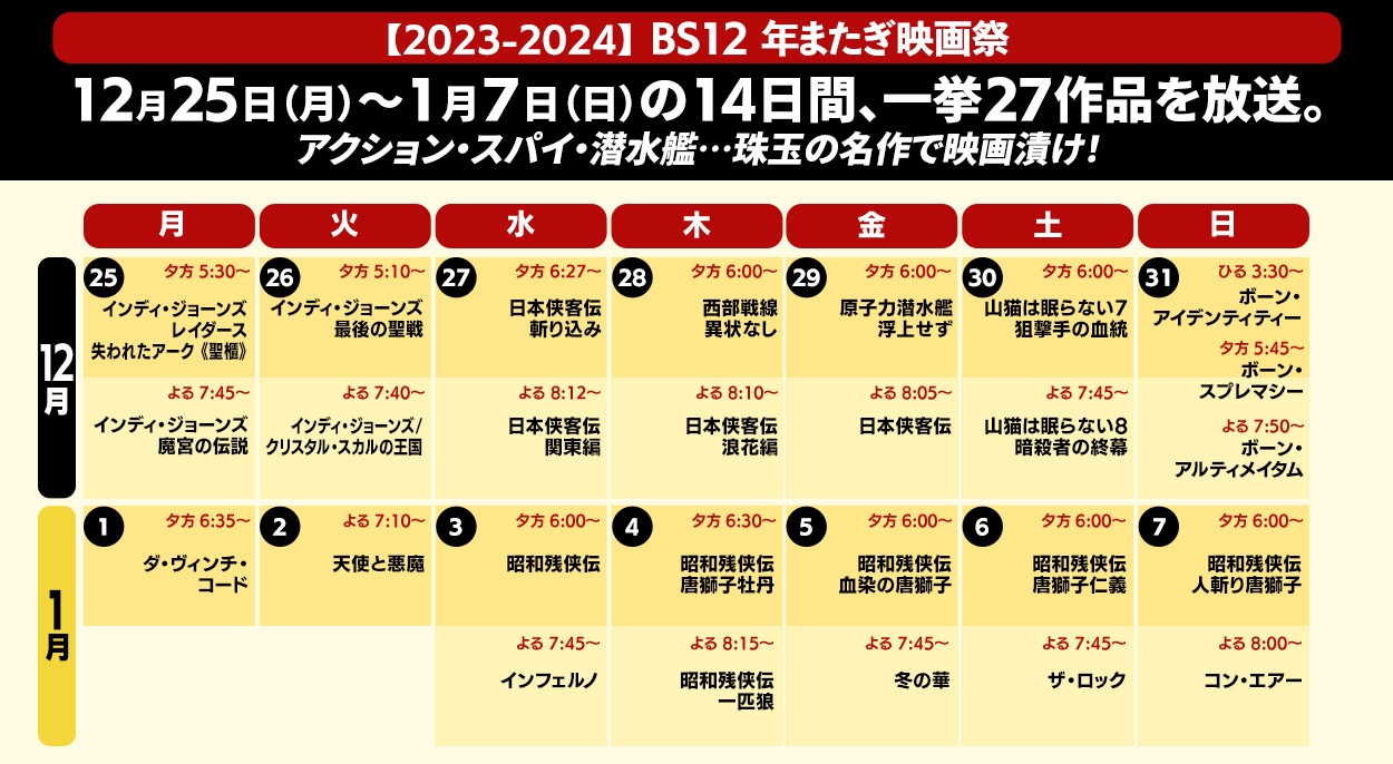 年末年始は連日連夜 映画漬け!BS12の年またぎ映画祭!