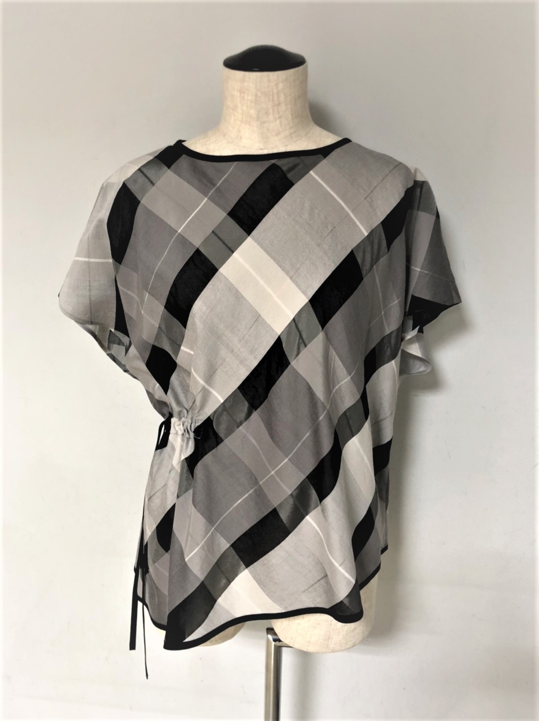 春夏のファッショントレンドの一つであるシアー(透け)素材とチェック柄で、大人の女性に相応しい上品な表情を作り出したいと考えました。素材や加工を工夫し、重厚なイメージのタータンチェックをモチーフにした格子柄が軽快に見え、相反する面白さを表現することができました。