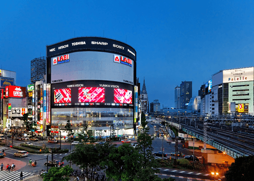 株式会社ユニカが提供する大型街頭ビジョン。100m2×3面の高精細のLEDは、その迫力により高い訴求力が見込めるだけでなく、3面映像による演出の多様性、選択肢の広さに加えて、リアルタイムの情報提供にも対応するなど、新宿ランドマークにふさわしい多彩なコンテンツを提供。