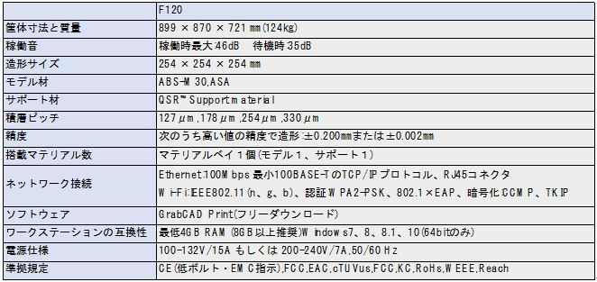 Stratasys F123シリーズの最新機種「F120」の特徴