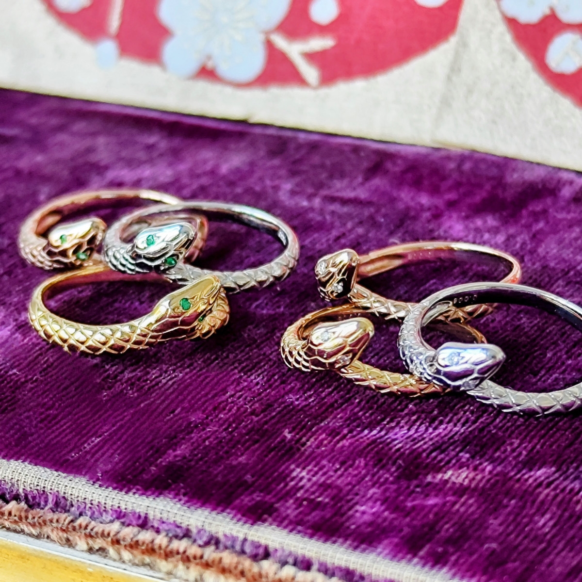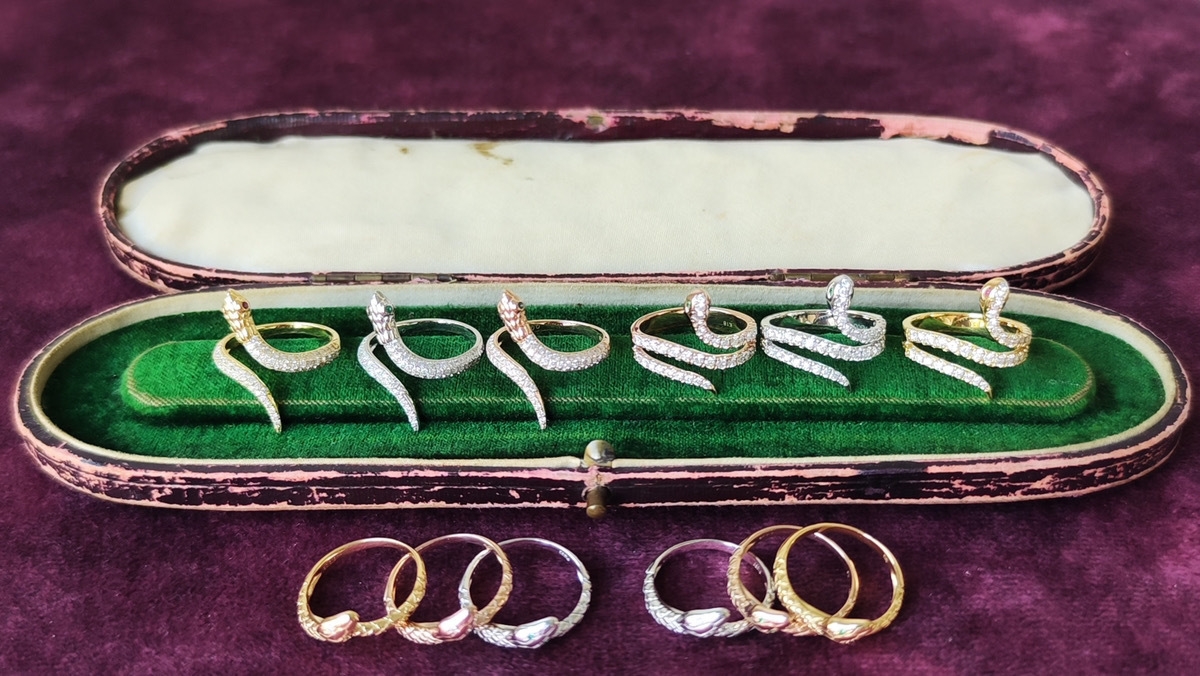 19世紀には、ヴィクトリア女王がアルバート公からエンゲージリングとしてスネークリングを贈られ、女王自身も蛇モチーフを好んでいたことでも知られています。当時のヨーロッパでは大きな人気を博し、現在でも蛇モチーフはアンティークジュエリーの世界で愛されています。