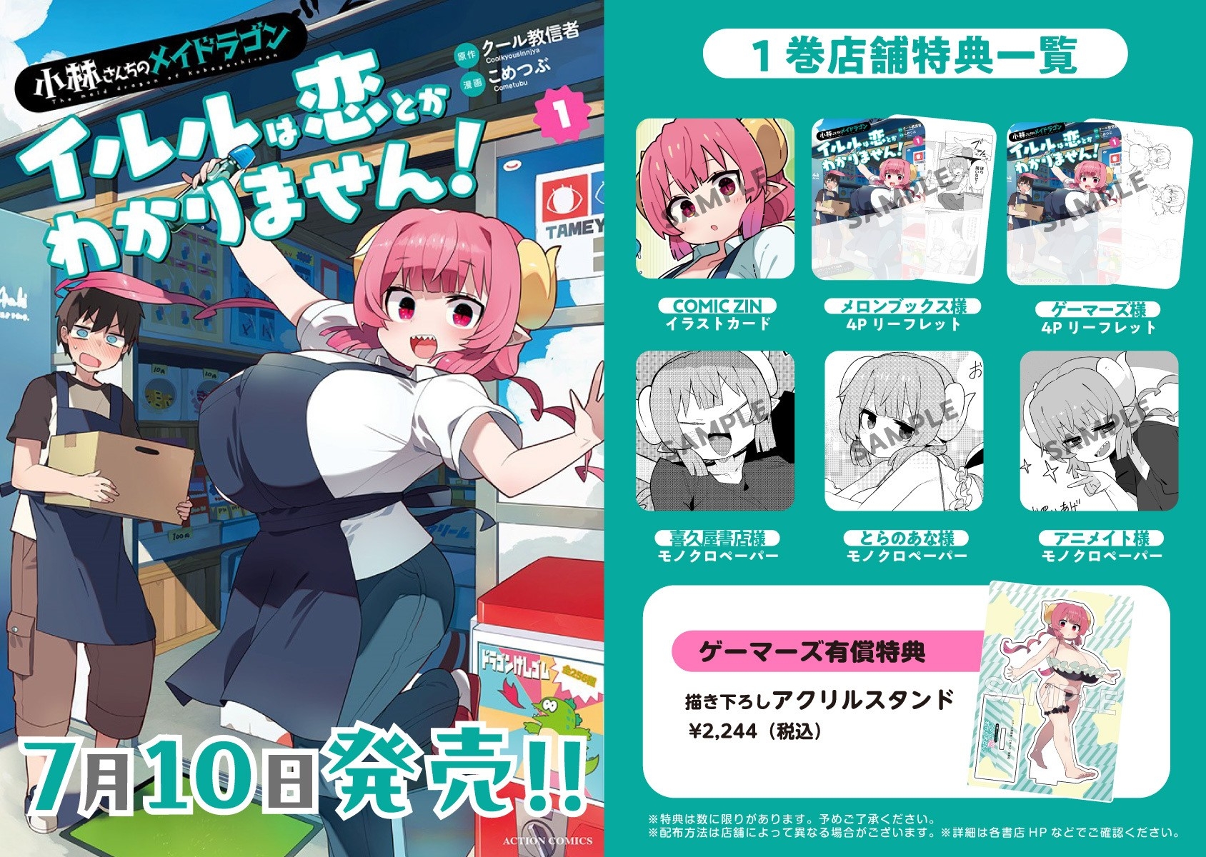 最新スピンオフ『小林さんちのメイドラゴン イルルは恋とかわかりません!』第1巻が7月10日(木)に発売となります。漫画を担当するのは『ササエルの中には誰もいない』『よい子先生と薄い本の悪魔』のこめつぶ。同作はwebアクションで好評連載中です。各書店様での特典もありますのでぜひお近くの書店様へ。