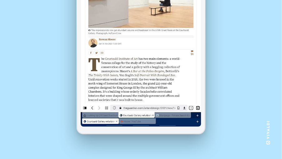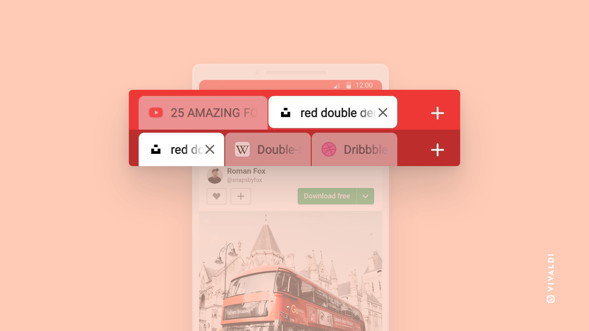 今年の初めにデスクトップ版Vivaldiでこの機能を発表したとき、大量のウェブページを管理するための画期的な方法として注目されました。今回、このユニークな二階建てのタブをAndroidブラウザにも導入しました。