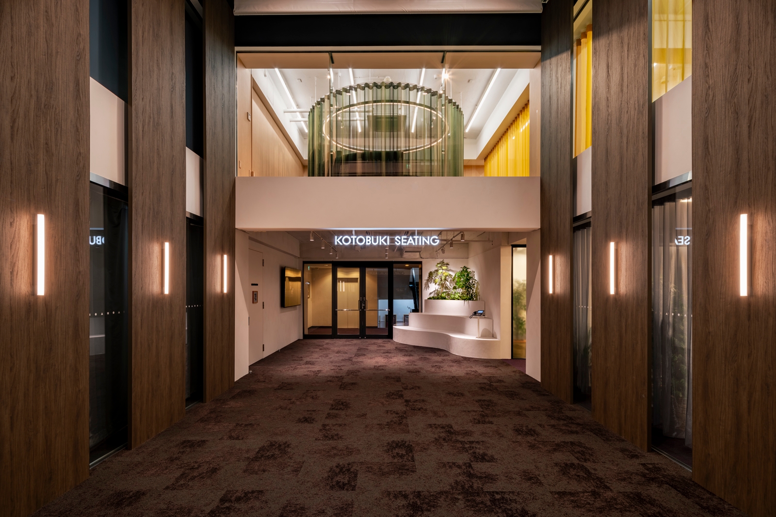 当社のメイン事業のひとつである「劇場」のホワイエをイメージしたエントランスが、お客様をお迎えします。