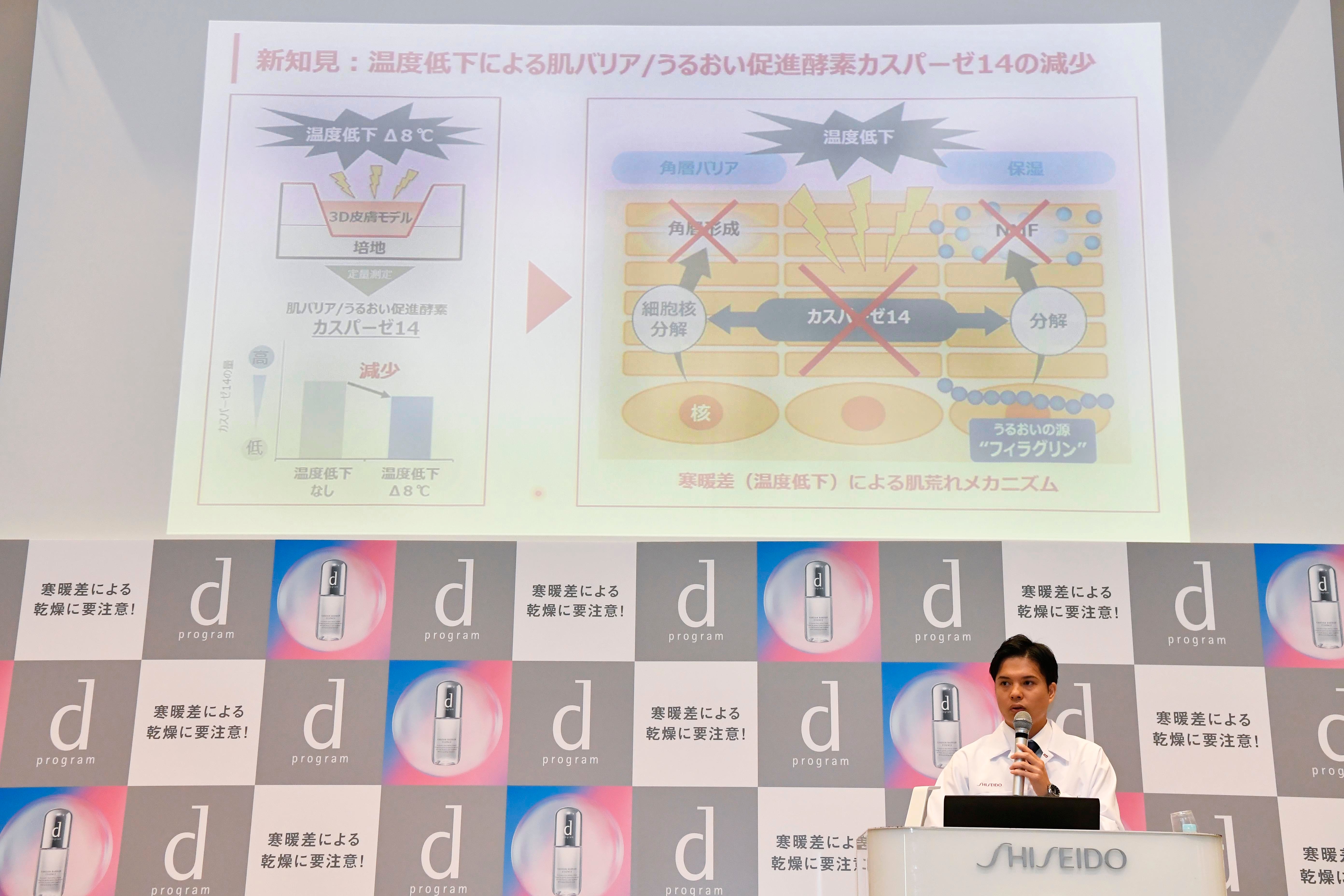 続いて、株式会社資生堂 グローバルイノベーションセンター研究員 村田大知からは資生堂が発見した「寒暖差による肌荒れ」についてお話しました。