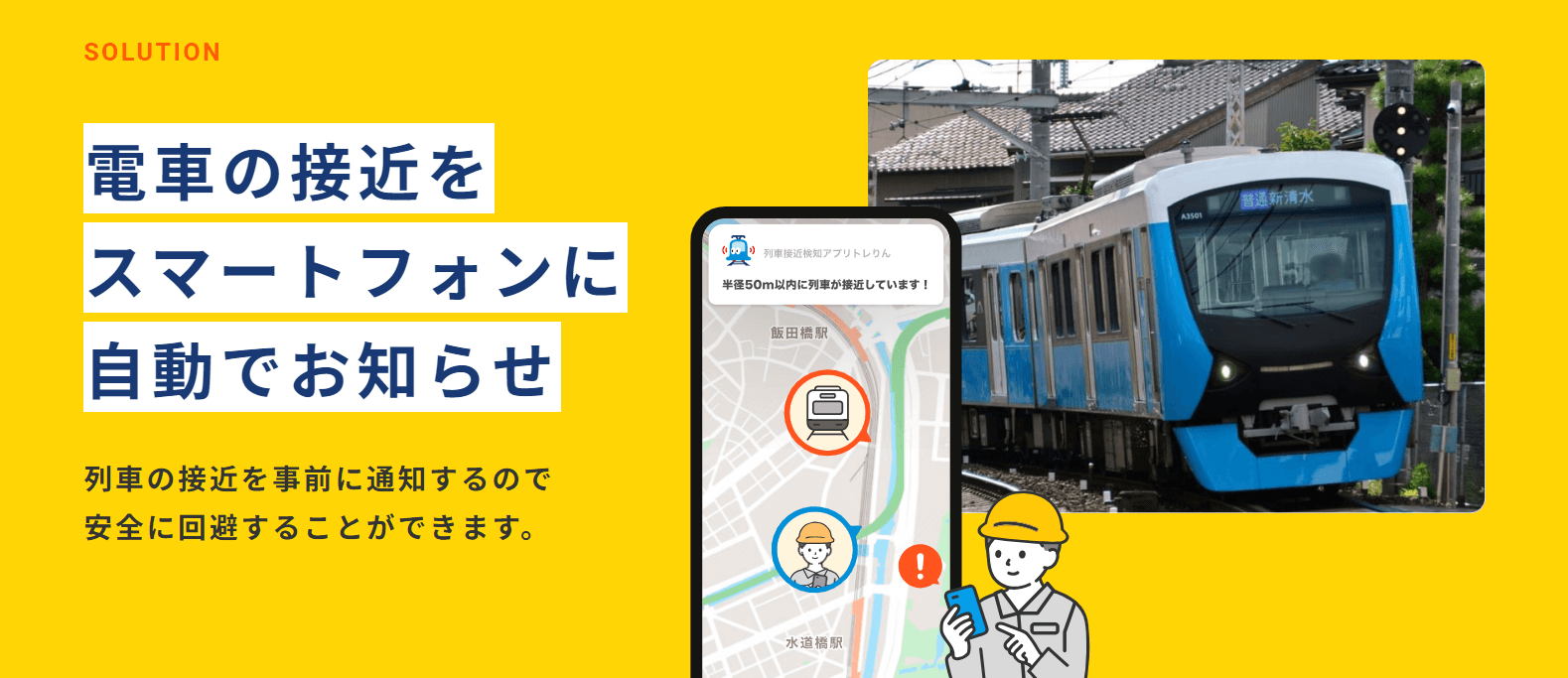 今までは作業員が電車との距離感を目視確認していましたが、列車の接近を作業員に直接アラートで通知することで、列車の通過を安全に回避することができます。