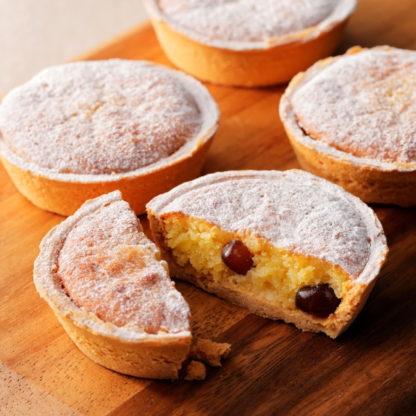 北海道産発酵バターを練り込んだアーモンド生地をタルトに流し入れ、