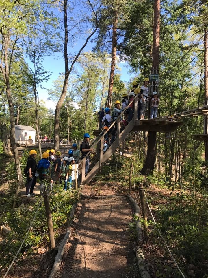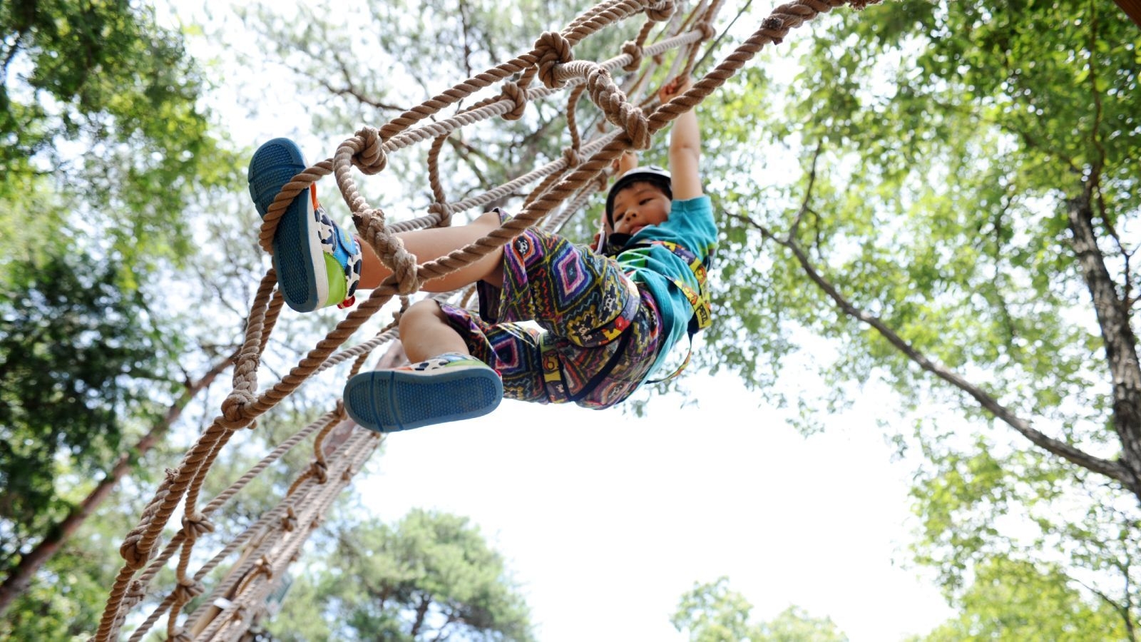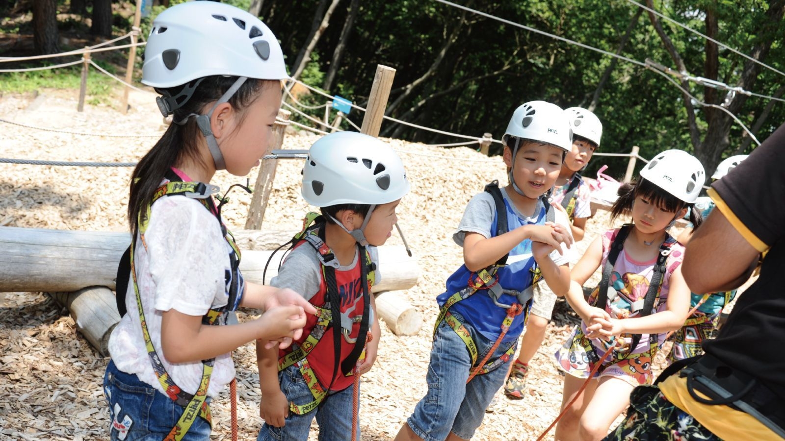 自分自身でコネクターを付け換えながら安全確保を行い、樹上を冒険する「ツリー トップ アドベンチャー」を、より小さな子どもたちから体験できるように改良したコースのこと。