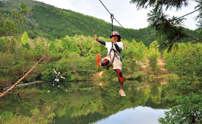2016年7月にオープンした「冒険の森 in のせ」は、京都府と兵庫県に隣接し「大阪のてっぺん」と呼ばれる大阪府能勢町にあります。かつて東洋一とも言われたキャンプ場、大阪府立総合野外活動センターの跡地(敷地面積約80,000平方メートル)を活用して、池の上空を滑空する500mを超えるジップラインを含む55のアクティビティが体験できる「ツリー トップ アドベンチャー」と、施設内をセグウェイで散策する「フォレスト セグウェイ(R) ツアー」、2つのプログラムが楽しめます。