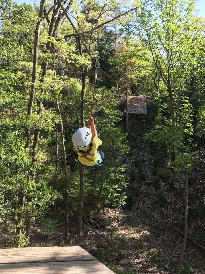 身長110cm、5歳から体験可能。コンティニューラインという、一度安全確保のためのコネクターをセットすれば、地上に下りるまでコネクターを付け換える必要のない、より安全なシステムを採用しています。