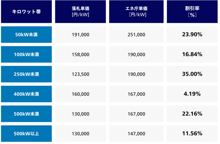 令和6年 8月20日に入札を実施し、下記図表の通り入札単価が決定しました。