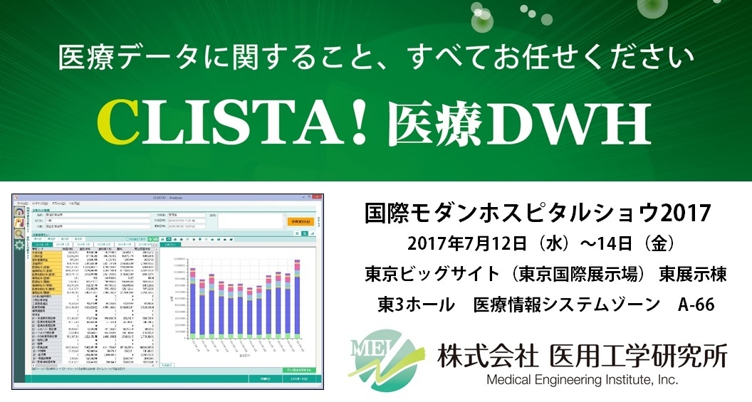 「国際モダンホスピタルショウ 2017」7月12日から出展 医療データを見える化する医療DWH『CLISTA!』等を展示