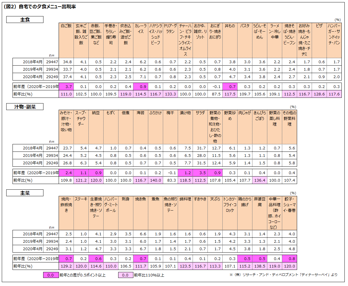 今回は、第二弾として非常事態宣言による外出自粛の影響がもたらす夕食メニューの変化についてレポートします。